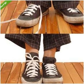 O mágico exibe seu cadarço desamarrado e dando apenas uma chacoalhada no tênis ele se amarra sozinho! Número muito intrigante apresentado por vários mágicos nacionais e internacionais na TV!