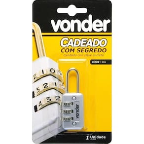 Cadeado com segredo cinza - Vonder Dados do Produto: - 1 Cadeado com segredo - Indicado para malas de viagens, armários de academias, armários de empresas, entre outros. - Segredo com 3 combinações. - A combinação de números segredo escolhido deverá ser anotada em local seguro, pois em caso de esquecimento Não será mais possível abrir o cadeado. - Possibilita que o segredo seja alterado inúmeras vezes ver instruções na embalagem do produto Detalhes do Produto: - Material do corpo do cadeado: Zamac - Material da haste do cadeado: Aço cromado - Largura do corpo do cadeado: 20,0 mm - Espessura do corpo do cadeado: 11,2 mm - Altura do corpo do cadeado: 35,8 mm - Diâmetro da haste do cadeado: 3,2 mm - Altura útil do cadeado: 21,5 mm - Cor do cadeado: Cinza Marca: Não Informado Ean: 7893946100322