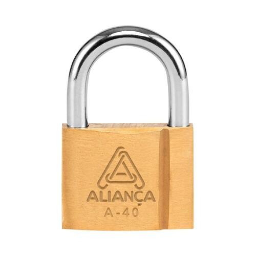 Com acabamento em LT (latão), o cadeado Aliança Metalúrgica oferece proteção contra corrosão e um visual refinado.