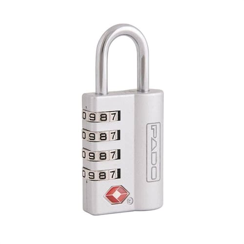 Descrição Cadeado ideal para bagagens e armários, super ressitente e seguro. Um produto com a qualidade Pado Corpo em zamac, Haste em aço cromado. TSA lock, permite que a segurança do aeroporto destrave, inspecione e tranque a bagagem sem danificar o cadeado. Cadeado com segredo. Trava por combinação numérica Estampa: Prata Peso: 40g. Medidas: 65mm de altura,30mm de largura e 15mm de espessura.