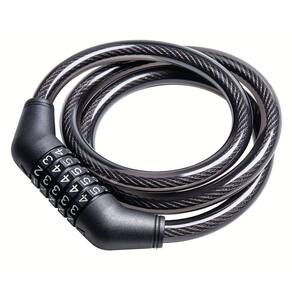 Cadeado para bicicleta com segredo Revestimento em silicone Tamanho: 12x1200mm Combinação de 5 dígitos. Combinação inicial - 0000 A senha pode ser alterada.