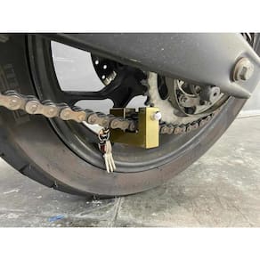 Cadeado para corrente moto de alta segurança 90mm gmd segundo a revista alemã sucurity não houve indícios de arrombamento neste tipo de cadeado , considerado o mais seguro do mundo . . Descrição do produto : Corpo : latão maciço com titâneo Manilha : endurecido/liga de aço chrome/ouro velho banhado dourado aço escovado Cilindro : aço inoxidáveldisco rotativo cilindro Tipo de chave diferenciada : chaves de aço inoxidável Função: 4 chaves iguais Tamanho Largura de 90/24/52,mm Boca vão abertura 31mm Espessura / largura pino 1/2 polegada / 12mm . Uns dos cadeados mais seguros do mundo
