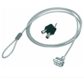 Cadeado para notebook com 2 cópias chave. Especificações técnicas. Cabo de segurança para notebook. Uma peça. 2 cópias principais. Material de alta qualidade. A segurança de design compacto fornece chaves à fechadura de aço do notebook, protege um objeto fixo e a outra extremidade do computador para abrir a fechadura, basta usar as chaves
