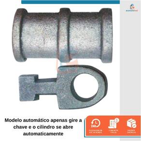 - Cilindro: só fecha utilizando a chave; - Barrica: peça parafusada na porta; - Cone: peça chumbada no piso; - Baioneta: peça de engate girada no cone e introduzida na barrica; - Fechamento do conjunto, somente usando a chave.