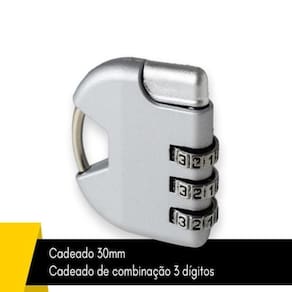 Especificações Técnicas: Forma do cadeado: Normal Tipo de abertura: Combinação numérica Dimensões aproximadas: 5,5 cm (altura) x 21 mm (largura) x 1 cm (profundidade) Peso aproximado: 16 g