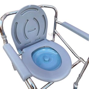 A cadeira de banho higiênica com coletor e assento com tampa Mobil Saúde é resistente até 100kg, além de ser totalmente dobrável.