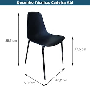A cadeira Abi composta por um assento anatômico em PP (polipropileno) texturizado, base resistente em aço com pintura eletrostática metalizada e assento/encosto em compensado multilaminado curvado, com acabamento em pintura, empilhável.
