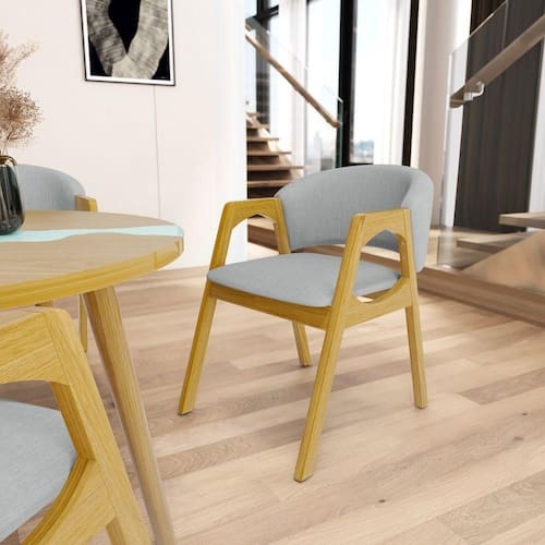 Cadeira Agatha Madeira Maciça Estofada Para Mesa De Jantar Linho Cinza 407
