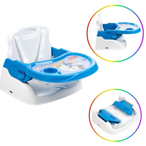 Cadeira de alimentação portátil bandeja ajustável booster até 15 kg disney mickey A cadeira para alimentação tipo booster é versátil e pode ser em cima de uma cadeira regular. Leve e facilmente desmontável, pode ser transportada para qualquer sem dificuldades. Muito segura, está equipada com cinto de segurança de 5 pontos. Idade recomendada: 6 meses + Peso suportado: até 15 kg Cinto de segurança de 5 pontos Bandeja removível e ajustável em 3 posições Adaptável a cadeiras Desmontável, fácil de transportar Material: plástico e aço Registro inmetro: 001 486/2022 de 3 meses direto com o fabricante