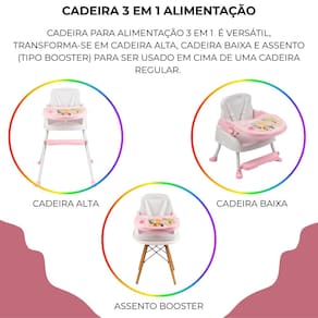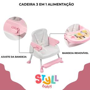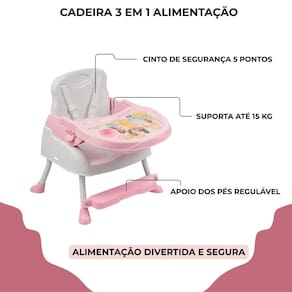 Cadeira de alimentação infantil portátil princesas 3 em 1 até 15 kg styll baby Cadeira para alimentação 3 em 1 é versátil, transformando-se em cadeira alta, cadeira baixa e assento tipo booster para ser em cima de uma cadeira regular. Leve e facilmente desmontável, pode ser transportada para qualquer lugar sem dificuldades. Muito segura, está equipada com cinto de segurança de 5 pontos. Registro inmetro: 013509/2024 Características: Idade recomendada: 6 meses + Suporta até: 15 kg Bandeja removível e ajustável em até 3 posições Apoio dos pés regulável Cinto de segurança de 5 pontos Suporte para copos Assento pode ser fixado com segurança em uma cadeira regular Material: plástico e aço de 3 meses direto com o fabricante Marca: Não Informado Ean: 7898488595186