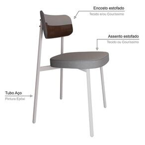 Material Principal Composição: Aço/Madeira Multilaminada/MDP/Espuma/TecidoMaterial da Estrutura Pés: AçoAcabamento Estrutura: Epóxi-PóTipo de Encosto: Fixo AnatômicoMaterial Estrutura do Encosto: Madeira MultilaminadaEnchimento Encosto: Espuma D-22Revestimento do Encosto: TecidoTipo do Assento: FixoMaterial Estrutura do Assento: MDPEnchimento Assento: Espuma D-28Revestimento do Assento: TecidoPossui Braços: NãoTipo: CadeiraModelo: FixoEmpilhável: NãoDobrável: NãoAmbiente Principal: Sala de Estar JantarEstilo: ContemporâneoSuporta Até (kg): 120kgRecomendações de Uso, Manutenção e Limpeza: Para a limpeza, utilize flanela seca ou pano macio levemente umedecido em água. Utilize um pano seco em seguida. Evite contato com produtos químicos (solventes, thinner, acetona, etc) e não utilize nenhum tipo de esponja de aço.Necessita de Montagem: Sim Acompanha Manual de MontagemComplexidade da Montagem: Média: pode ser montado por mais de uma pessoa e/ou necessite de maior conhecimento para montagem.