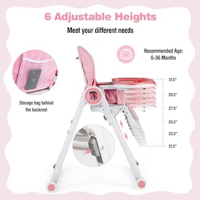 Descrição: Nossa cadeira alta ajustável para bebês será um ótimo presente para seus filhos. Esta cadeira alta para bebês foi projetada com encosto, apoio para os pés, bandejas de comida e alturas de assento ajustáveis, permitindo que você altere a posição para atender a várias necessidades. As bandejas duplas podem ser empilhadas juntas ou usadas separadamente e a bandeja superior é construída com ranhura para colocar garrafas ou entranhas. A cadeira de alimentação para bebês é fácil de dobrar e fácil de mover com rodas bloqueáveis. Para uma manutenção conveniente, as bandejas de alimentos são removíveis e podem ser lavadas na máquina de lavar louça, e a almofada do assento também é removível para limpeza. Feita de estrutura de aço firme, a cadeira de jantar infantil tem uma estrutura estável. Além disso, usando materiais seguros e várias proteções de segurança, os pais podem aliviar suas preocupações . Características: Possui 6 alturas de assento ajustáveis, encosto de 3 posições, apoio para os pés de 4 posições As bandejas duplas para alimentos são removíveis e ajustáveis em 2 posições. As bandejas de alimentos são feitas de material PP sem BPA e lavável na máquina de lavar louça. A almofada de assento de PU macia e não agride é removível e fácil de limpar. Construída com defletor de segurança anti-queda e cinto de segurança de 5 pontos. Todas as 4 rodas giratórias são projetadas com freios para maior segurança. Estrutura triangular resistente de tubos de aço duráveis. Rápido de dobrar para armazenamento conveniente e Especificações de transporte: Cor: preto/verde/rosa/colorido Material: aço+PP+PU Dimensão de desdobramento: 30" x 23" x 41,5" (C x L x A) Dimensão dobrada: 6,5" x 23" x 34" (C x L x A) Faixa de altura ajustável: 32"-41,5" Capacidade de peso da cadeira alta: 33 libras Capacidade de peso da bandeja: 11 libras Idade adequada: 6-36 meses líquidos Peso: 18,5 libras O pacote inclui: 1 x cadeira alta para bebês 1 x guia do usuário - Ajustes flexíveis atendem a diferentes necessidades: nossa cadeira alta para bebês possui 6 alturas de assento ajustáveis, encosto de 3 posições, apoio para os pés de 4 posições e bandejas de comida de 3 posições, permitindo que você ajuste livremente a posição de acordo com suas necessidades. A cadeira alta para bebês pode ser usada para alimentar, brincar, descansar e muito mais, acompanhando seu bebê a crescer. - Bandejas duplas removíveis e almofada de assento: a cadeira alta para bebês é equipada com bandejas duplas que são removíveis e laváveis na máquina de lavar louça, para que o processo de limpeza seja bastante simplificado. Além disso, a bandeja superior é projetada com ranhura para colocar garrafas ou entranhas. Além disso, a almofada do assento é removível e fácil de limpar com um pano úmido. - Proteções de segurança abrangentes: a segurança sempre vem em primeiro lugar. Há um defletor de segurança anti-queda embaixo das bandejas de comida, o que pode impedir que seu bebê escorregue da cadeira alta. Enquanto isso, o cinto de segurança de 5 pontos adiciona segurança adicional quando os pais não estão por perto, o que também é mais resistente do que o cinto de segurança normal de 3 pontos. - Estrutura estável e materiais adequados para crianças: feita de tubos de aço de alta resistência, esta cadeira de jantar infantil tem uma alta capacidade de peso e não é fácil de derrubar com a estrutura triangular e o suporte de 4 pontos. Além disso, a almofada de PU macia e agradável à pele é confortável de sentar e as bandejas de alimentos em PP são livres de BPA e seguras para a saúde do seu bebê. - Design dobrável e fácil mobilidade: a cadeira de alimentação para bebês é fácil de dobrar e desdobrar em segundos, economizando espaço para armazenamento e transporte. Além disso, as bandejas de comida podem ser suspensas na perna traseira, o que evita a perda de tempo para encontrar ou armazenar as bandejas de comida. Além disso, a cadeira de alimentação portátil é construída com 4 rodas e todas as rodas podem ser bloqueadas para uma posição firme.
