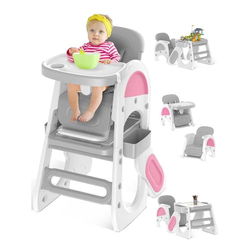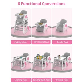 - ?Cadeira alta conversível 6 em 1?Esta cadeira alta versátil para bebês oferece seis funções diferentes, adaptando-se às necessidades do seu filho desde a infância até a primeira infância. Seja usada como uma cadeira alta de tamanho normal, cadeira de jantar infantil, assento infantil acolchoado, mesa de aprendizagem, mesa de blocos de construção ou mesa de desenho, esta cadeira alta oferece valor duradouro para bebês e crianças de 6 meses a 8 anos