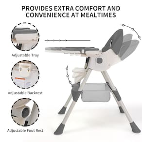 A cadeira alta dobrável Cochildor 4 em 1 é uma opção versátil e conveniente para o seu filho em crescimento. Esta cadeira alta conversível pode se adaptar às necessidades do seu bebê, transitando de uma cadeira alta tradicional para uma cadeira de criança, cadeira de balanço e cadeira inferior com rodas. Com um arnês de 5 pontos, bandeja, apoio para os pés e rodas para facilitar a mobilidade, oferece uma solução de assento segura e confortável. À medida que o seu pequeno cresce, a cadeira pode ser ajustada para acomodar a mudança de tamanho, garantindo um ajuste perfeito. Projetada com a conveniência em mente, esta cadeira alta é fácil de dobrar e armazenar quando não estiver em uso, tornando-a a escolha ideal para casas com espaço limitado. - Design versátil: esta cadeira alta converte de uma cadeira alta de tamanho normal para uma cadeira de criança, uma cadeira de balanço e até mesmo uma cadeira baixa móvel, tornando-a adequada para bebês e crianças em crescimento. Recomendado para uso de 6 a 36 meses. - Segurança em primeiro lugar: a cadeira alta equipada com um sistema de arnês de 5 pontos e pés antiderrapantes, garantindo a segurança e o conforto do seu filho durante as refeições. - Confortável e fácil de limpar: o encosto e o apoio para os pés são muito fáceis de ajustar para encontrar uma posição confortável para o seu bebê. A bandeja é facilmente ajustável e removível, tornando a limpeza após lanches e comer sem esforço. - Cadeira alta dobrável: o design dobrável facilita o armazenamento e o transporte quando não estiver em uso, economizando espaço valioso. - Mantenha a estrutura estável: esta é uma cadeira alta leve com um design moderno e elegante. Ao desdobrar, mantenha as pernas frontal e traseira em um ângulo máximo. - Garantia e serviço: estamos aqui para ajudar! Os produtos Cochildor têm garantia limitada e atendimento ao cliente 24 horas por dia, 7 dias por semana. Se você tiver alguma dúvida, não hesite em entrar em contato conosco. Muito obrigado por sua gentileza e paciência.