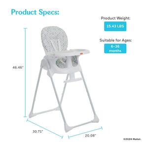 Fisher-Price Cadeira alta Tiny Bites, cadeira alta para bebês com sete posições de altura ajustável, fácil de dobrar, cadeira alta portátil leve e fácil de limpar - Versátil e conveniente: com 7 posições de altura ajustáveis, 3 posições de bandeja, 3 posições de apoio para os pés e 2 posições de encosto, a cadeira alta se adapta às necessidades do seu filho em todas as etapas. Além disso, a bandeja dupla removível e fácil de limpar permite alternar perfeitamente entre comer e brincar. - Dobra rápida com um clique: projetado com pais ocupados em mente, o recurso de dobra rápida com um clique facilita o armazenamento e a portabilidade. - Escolha segura: a segurança é uma prioridade máxima, e esta cadeira alta atende aos padrões ASTM, dando a você paz de espírito. - Opções divertidas: Disponível em designs divertidos e coloridos, esta cadeira alta adiciona um toque de diversão à hora das refeições enquanto combina lindamente com qualquer decoração de cozinha. - Especificações do produto: As dimensões do produto são 51 cm C x 78 cm L x 118 cm A. Este produto é adequado para crianças de 6 a 36 meses.
