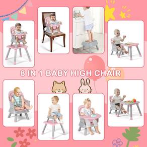 TODEFULL A cadeira alta para bebês é feita de materiais PP de alta qualidade, que são seguros e duráveis. Equipadas com uma bandeja ajustável de 3 posições, estas cadeiras altas para bebês e crianças pequenas podem atender às necessidades de crianças em crescimento. E a bandeja sem pontas afiadas ou bordas pode ser limpa com uma máquina de lavar louça, proporcionando a máxima comodidade para você. Esta cadeira de bebê 8 em 1 atende às várias necessidades do crescimento do bebê, o que é o presente perfeito para o bebê. - Cadeira alta para bebês 8 em 1: nossa cadeira alta para bebês é conversível; 1. cadeira alta de alimentação de tamanho normal; 2. assento elevatório para bebês; 3. conjunto de mesa e cadeira de bebê; 4. mesa de bloqueio; 5. cadeira de jantar pequena; 6. cadeira universal infantil; 7. banquinho individual infantil; 8. banquinho individual - Design seguro e confortável: esta cadeira de alimentação para bebês vem com um arnês ajustável de 5 pontos, que pode proteger a segurança do bebê; a estrutura robusta da pirâmide com 4 almofadas antiderrapantes adiciona segurança adicional e protege o chão de arranhões - Converta para assento elevatório: pegue a parte inferior das pernas e fixe na cadeira com a alça de assento incluída, você receberá um assento elevatório para bebês! Permita que seu bebê se sente mais alto para participar da festa ou desfrutar de comida com os pais no restaurante - Fácil de montar e limpar: graças ao design de travamento automático, você pode instalar esta cadeira de jantar para bebês facilmente e rapidamente sem ferramentas; a bandeja removível com ajuste de 3 posições é feita de materiais PP de alta qualidade, seguros e fáceis de limpar - Boa escolha para o seu bebê: esta cadeira alta com bandeja é muito versátil e pode atender à série de necessidades de crianças de 6 a 36 meses; vários modos de conversão são muito convenientes e rápidos, adequados para feriados, festivais, dia das crianças