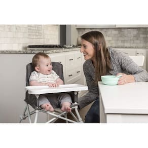 Regalo Cadeira alta portátil para viagem My High Chair, para ambientes internos e externos, kit bônus, inclui bandeja com suporte para copos, cinza