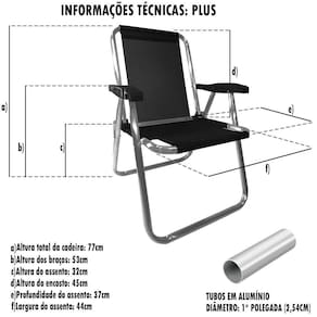 A Cadeira Plus Alumínio ZAKA é ideal para uso em geral é indicada para pessoas com até 120kg. Fabricada em alumínio de alta resistência e que não enferruja, tecido BMDNET, soldado eletronicamente, sem costuras. Braços injetados. Atende público exigente, com alto padrão de qualidade. Apesar de ser pequena é muito robusta, forte e resistente, pode ser utilizada em diversos ambientes, como praia, camping e jardim, proporcionando ótimos momentos de lazer. Diferencial: a marca ZAKA é reconhecida por ser uma marca de qualidade. Todos os produtos são revisados e testados. A Cadeira Plus é pequena, compacta, mas muito mais resistente. Utilizamos os melhores componentes e insumos do mercado.