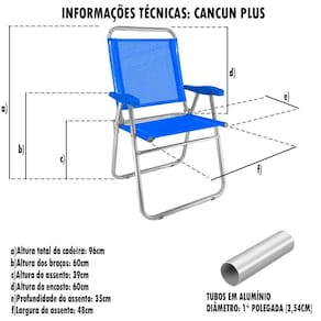 A Cadeira Cancun Plus Colors Alumínio ZAKA é ideal para uso no litoral. Tem seus principais diferenciais a largura e a altura e é indicada para pessoas com até 120 kg, mais altas. Fabricada em alumínio de alta resistência e que não enferruja, tecido BMDNET, soldado eletronicamente, sem costuras, assento duplo. Atende público exigente, com alto padrão de qualidade. Possui proteção que não risca o chão. Além disso, pode ser utilizada em diversos ambientes, como praia, camping e jardim, proporcionando ótimos momentos de lazer. Diferencial: a marca ZAKA é reconhecida por ser uma marca de qualidade. Todos os produtos são revisados e testados. A cadeira Cancun Plus Colors é muito maior e muito mais resistente. Utilizamos os melhores componentes e insumos do mercado.