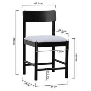 Cadeira Amber Madeira Maciça - Preto Assento Estofado Linho Bege Mescla Impermeável