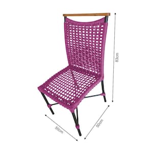 Cadeira Anne Corda Náutica Detalhe Em Madeira Base Alumínio Preto-rosa - Cor: Rosa