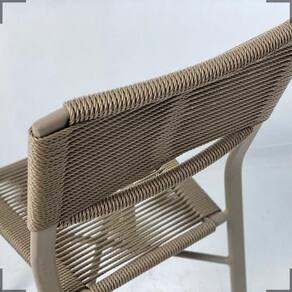 O encosto e assento é feito em corda sintética trançadas artesanalmente.