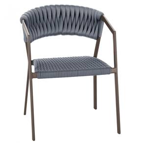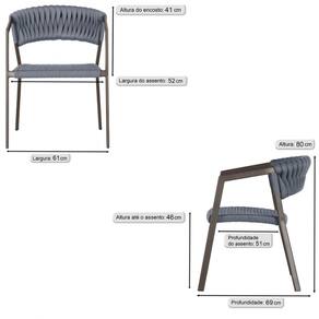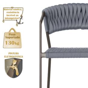 Cadeira Atenas Tricô Náutico e Alumínio com Proteção UV para Varanda, Cozinha, Área, Jardim - Pintura Marrom - Prata