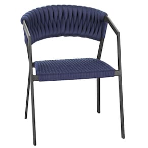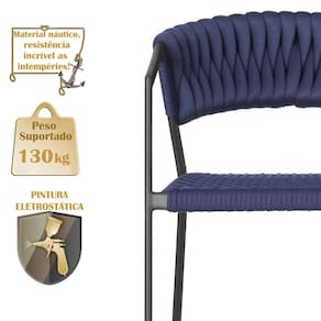 Cadeira Atenas Tricô Náutico e Alumínio com Proteção UV para Varanda, Cozinha, Área, Jardim - Pintura Preta - Azul Marinho