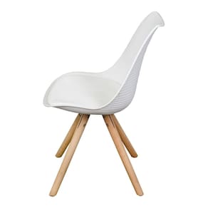 A cadeira Atlas é composta por assento em polipropileno com almofada fixa de espuma injetada revestida em PU com base em madeira.
