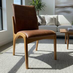 Estrutura robusta em madeira maciça. Revestimento em courino marrom, elegante e prático. Conforto no assento e encosto para uso prolongado. Design que combina com ambientes residenciais e comerciais. Marca: Não Informado