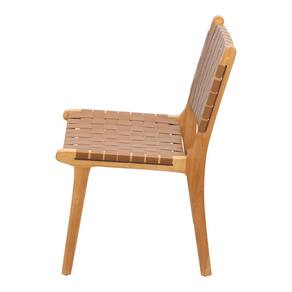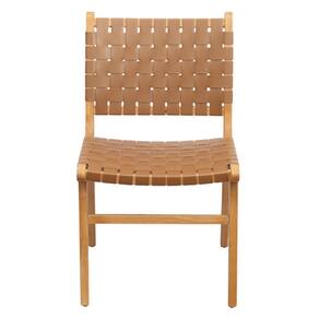 Nossa Cadeira Aya - Caramelo apresenta um design elegante e rústico, perfeito para adicionar um toque acolhedor e natural ao seu espaço. Sua estrutura é feita de madeira maciça clara, com um acabamento que realça a beleza dos veios naturais. O destaque fica por conta do assento e do encosto, confeccionados com tiras em PU caramelo entrelaçadas, criando um padrão visual interessante e proporcionando um conforto flexível e arejado.