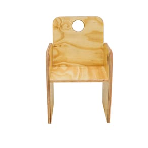 Fabricada em compensado de pinus com pintura em verniz atóxico, priorizou-se manter a característica da cor da madeira (natural), como forma de neutralizar os diversos espaços em que pode ser inserida.