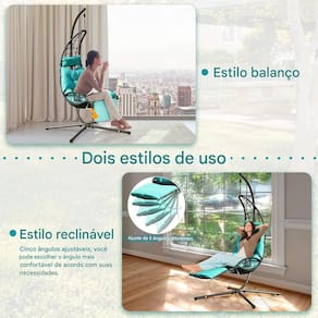 Relaxe com estilo nesta elegante cadeira de balanço espreguiçadeira meia lua, projetada para oferecer conforto superior e um design moderno que combina com qualquer ambiente.