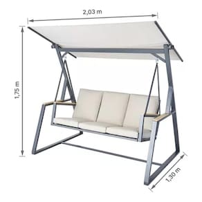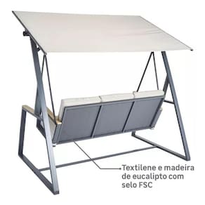 Balanço para Jardim Aço 3 Lugares Oris 203 x 130 cm Bege NaterialTer um jardim é uma forma de trazer mais vida para a casa. Além de tornar o espaço mais bonito, investir em uma área com plantas também faz com que se possa respirar um ar mais puro. O Balanço para Jardim Aço 3 Lugares Oris 203 x 130 cm Bege Naterial é um móvel que deixa os momentos de descanso mais agradáveis.Características do Balanço para Jardim Aço 3 Lugares Oris 203 x 130 cm Bege NaterialEsse produto possui combinação harmônica entre a cor cinza da estrutura e o bege do assento e encosto. É fabricado em aço e as almofadas são em Poliéster. Ele conta com 3 lugares e possui capacidade de peso de 395 kg.As medidas do balanço são de 1,75 m de altura, 1,30 de largura e 54 cm de profundidade. Ele pesa 45 kg.Vantagens do Balanço para Jardim Aço 3 Lugares Oris 203 x 130 cm Bege Naterial- Conta com tonalidades de fácil combinação com outros elementos da área em que é posicionado;- Faz com que os momentos de relaxamento sejam mais divertidos;- A cobertura do Balanço para Jardim Aço 3 Lugares Oris 203 x 130 cm Bege Naterial pode ser ajustada;- Os forros do assento e do encosto são impermeáveis e podem ser retirados para limpeza. Eles também possuem zíper.Informações extrasO produto é comercializado desmontado, mas acompanha manual de instruções. A garantia oferecida na aquisição é de 24 meses. Peça o seu agora mesmo!