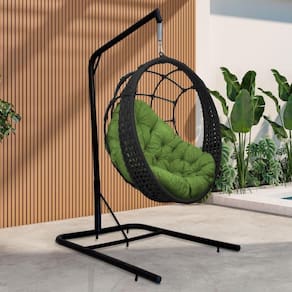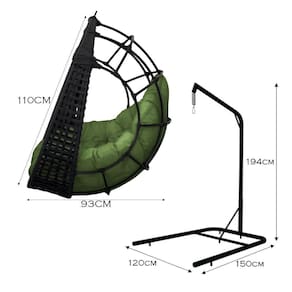 Cadeira Balanço Ninho Suspenso Em Corda Náutica Luxo Com Suporte Preto-verde