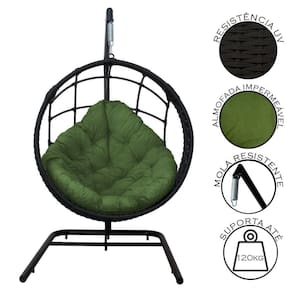 Cadeira Balanço Ninho Suspenso Em Corda Náutica Luxo Com Sup Preto/verde