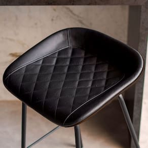 A estrutura da banqueta é fabricada em aço tubular de 20mm com pintura epóxi eletrostática preta, garantindo durabilidade e resistência. O assento, revestido em couríssimo matelassê, oferece um conforto excepcional, graças à espuma de densidade D-28 e à estrutura de madeira compensada. O acabamento em rolote revestido das bordas confere um toque de elegância ao design industrial.