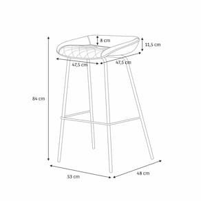 Para maior praticidade, a banqueta conta com apoio para os pés e proteção anti-risco nas ponteiras, garantindo segurança e preservação do piso. Com 84 cm de altura, 53 cm de largura e 48 cm de profundidade, ela suporta até 120 kg, sendo robusta e versátil para diversos tipos de ambientes.