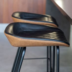 A estrutura da banqueta é fabricada em aço tubular de 20mm com pintura epóxi eletrostática preta, garantindo durabilidade e resistência. O assento, revestido em couríssimo matelassê, oferece um conforto excepcional, graças à espuma de densidade D-28 e à estrutura de madeira compensada. O acabamento em rolote revestido das bordas confere um toque de elegância ao design industrial.