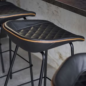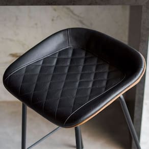 A estrutura da banqueta é fabricada em aço tubular de 20mm com pintura epóxi eletrostática preta, garantindo durabilidade e resistência. O assento, revestido em couríssimo matelassê, oferece um conforto excepcional, graças à espuma de densidade D-28 e à estrutura de madeira compensada. O acabamento em rolote revestido das bordas confere um toque de elegância ao design industrial.
