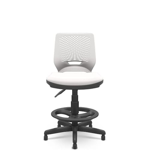 O design moderno da Beezi Caixa reflete-se no encosto e assento, desenhados para oferecerem ergonomia. Compostos em material termoplástico de engenharia, presente também nos apoios de braço, esse modelo da linha possui elevação e apoios para pés, indicados para bancadas mais altas e outras aplicações práticas que exigem acomodação em uma posição elevada.