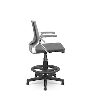 O design moderno da Beezi Caixa reflete-se no encosto e assento, desenhados para oferecerem ergonomia. Compostos em material termoplástico de engenharia, presente também nos apoios de braço, esse modelo da linha possui elevação e apoios para pés, indicados para bancadas mais altas e outras aplicações práticas que exigem acomodação em uma posição elevada.
