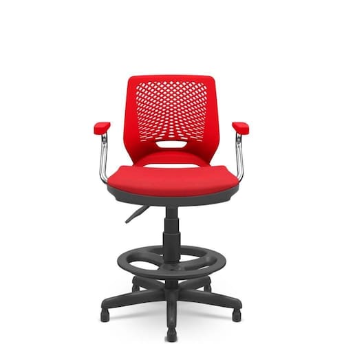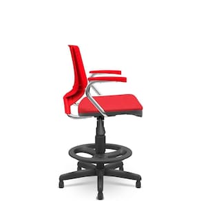 O design moderno da Beezi Caixa reflete-se no encosto e assento, desenhados para oferecerem ergonomia. Compostos em material termoplástico de engenharia, presente também nos apoios de braço, esse modelo da linha possui elevação e apoios para pés, indicados para bancadas mais altas e outras aplicações práticas que exigem acomodação em uma posição elevada.