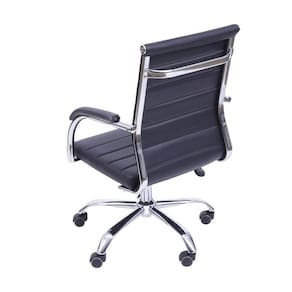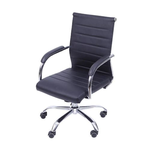 Especificações Técnicas: Cor: Preta Peso: 12 kg Altura: 0,91m Comprimento: 0,48m Largura: 0,54m Ideal para uso: Interno Peso suportado: 120Kg Pode ser empilhada Não EAN: 7898599225705 Modelo: Florença Base: Cromada Material: Assento em PU com estrutura cromada. Sistema relax com travamento. Rodas em PU Garantia: O produto possui garantia do fornecedor de 6 meses contra defeitos de fabricação
