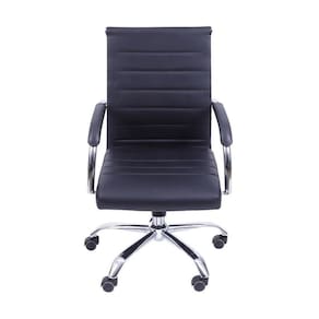 Conteúdo: Cadeira Boxbit Florença Baixa Rodízio Preta em P.U. Base Cromada Base Rodízio