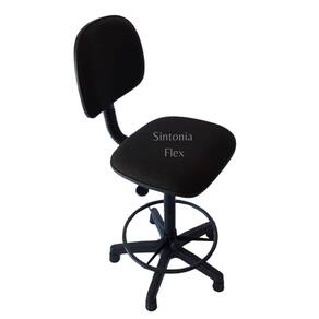 Cadeira caixa alta com aro com base sapata fixa pra mercado balcao recpçao tecido preto Cadeira caixa - aro para apoio dos pés - prolongador de altura - madeira reflorestada - espuma injetada revestida de tecido j. Serrano anti-chamas e bordas em pvc flexivel - pés fixo com sapatas. Altura do chão aom assento: Mínima 63 cm Máximo 75 cm Marca: Sintonia Flex