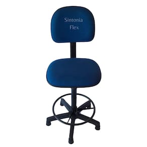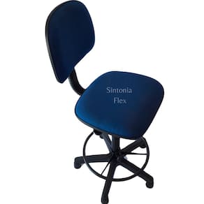 Cadeira caixa alta com aro com base sapata fixa pra recpçao balcao mercado tecido azul