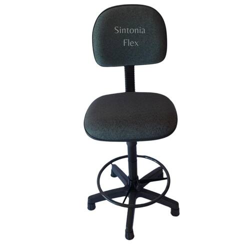 Cadeira caixa alta com aro com base sapata fixa pra recpçao balcao mercado tecido cinza Cadeira caixa - aro para apoio dos pés - prolongador de altura - madeira reflorestada - espuma injetada revestida de tecido j. Serrano anti-chamas e bordas em pvc flexivel - pés fixo com sapatas. Altura do chão aom assento: Mínima 63 cm Máximo 75 cm Marca: Sintonia Flex