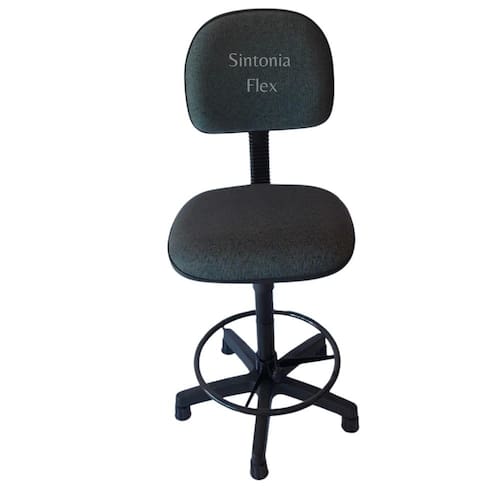 Cadeira caixa alta com aro com base sapata fixa pra recpçao balcao mercado tecido cinza