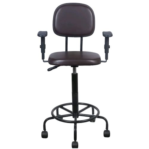 CADEIRA CAIXA ALTA - COM L DUPLO - BRAÇO COM REGULAGEM DE ALTURA - BASE DE FERRO COM RODÍZIO - TINTURA ELETROSTÁTICA - COURO SINTÉTICO -  ESPUMA INJETADA - MADEIRA REFLORESTADA - BORDAS EM PVC FLEXIVEL - PROLOGANDOR DE ALTURA - MECANISMO A GÁS.